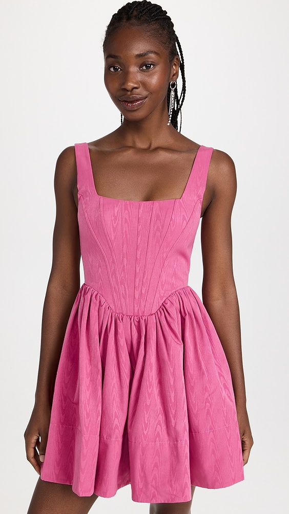 A charmingly colored STAUD mini dress, featuring a ballet-inspired fit-and-flare silhouette and shimmery moire patterning. Go for a polished-meets-playful look by pairing this piece with sporty slide sandals.