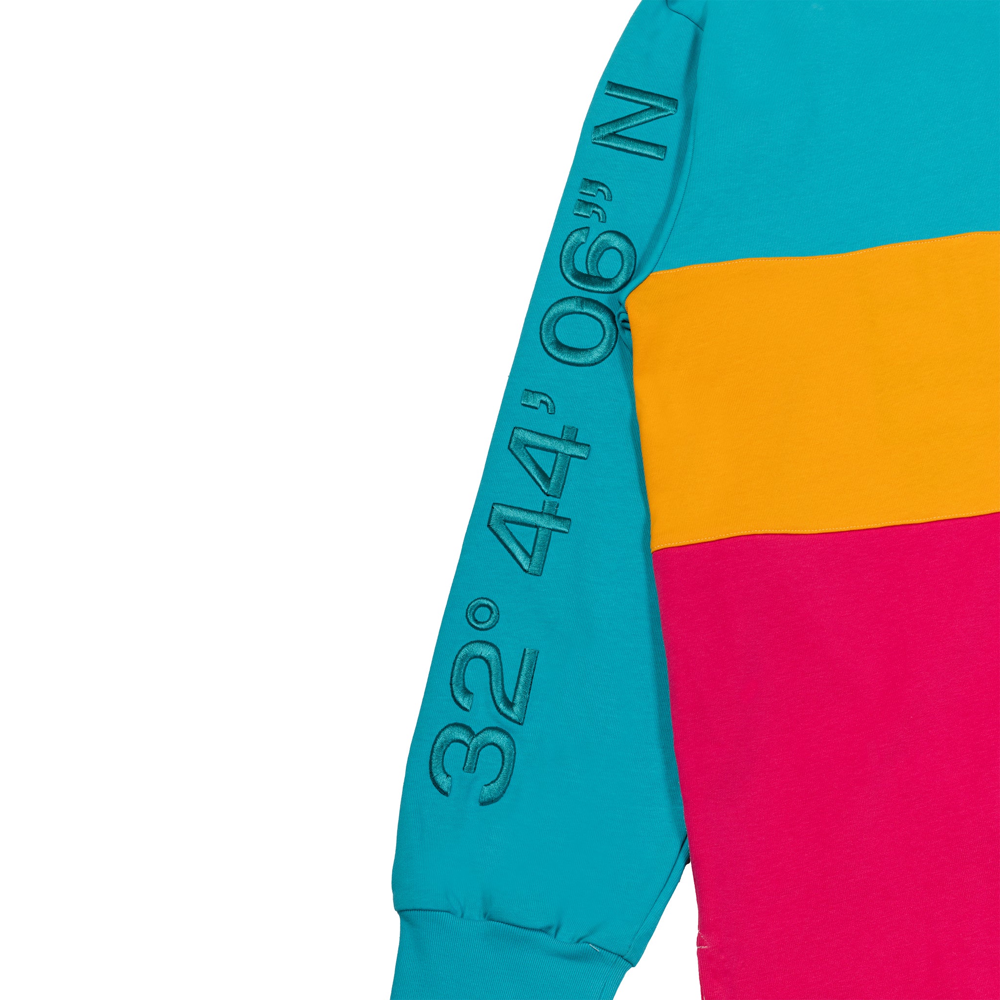 This oversized rugby shirt, a bold nod to the intersection of sport and style, draws inspiration from the preppy aesthetics of the mid-’90s to early 2000s. Crafted in a striking split-color design, it pairs vibrant tones with premium construction, embodying the playful yet elevated energy that defines By Way of Dallas.