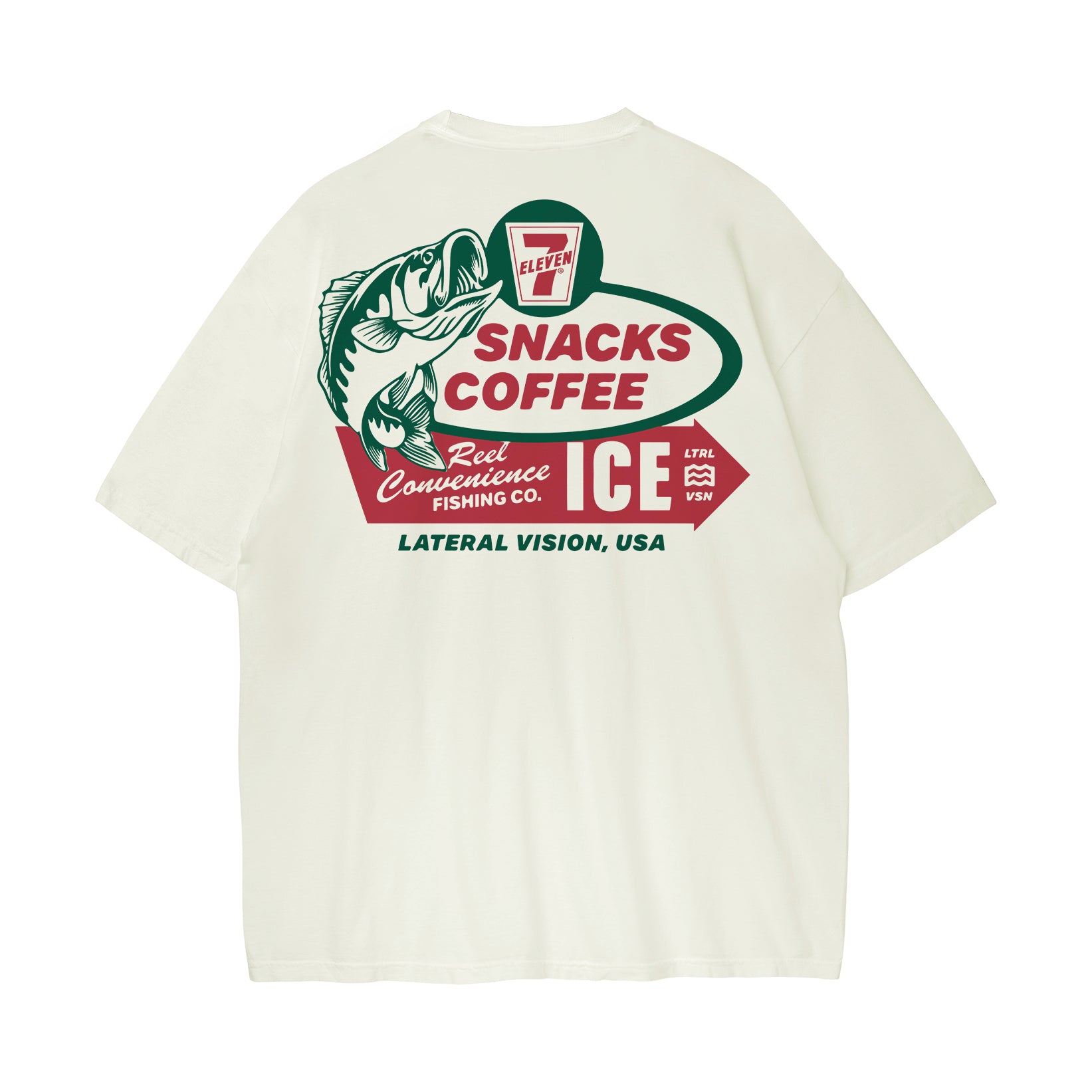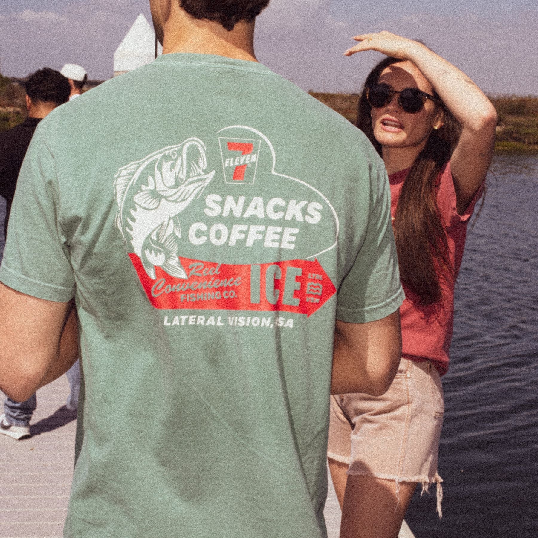 Use this 7-Eleven® x Lateral Vision collab tee as your shopping list before hitting the water. Snacks, Coffee, Ice.