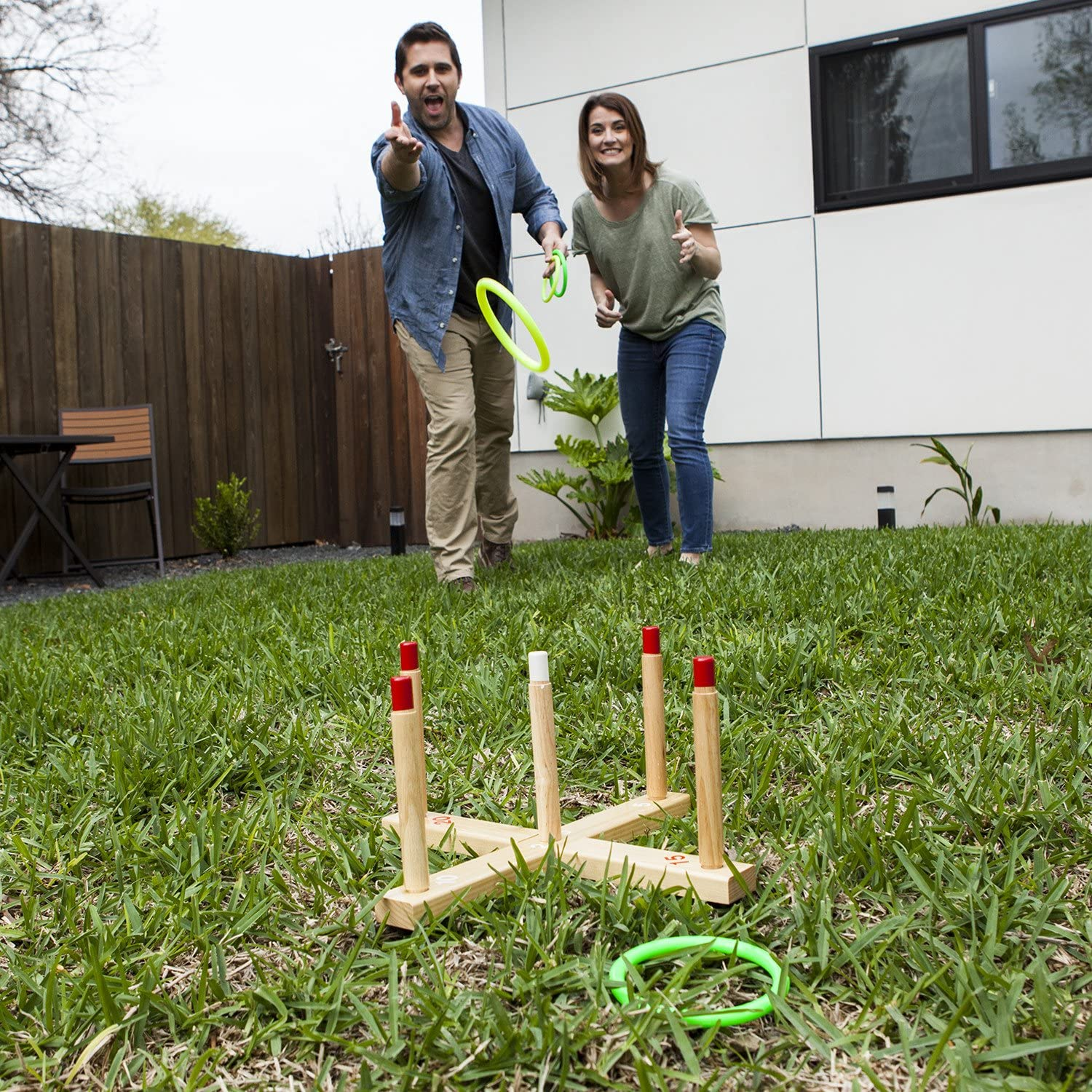 • DURABLE WOODEN CONSTRUCTION: Designed for ultimate durability, this long lasting ring toss set is made from solid wood, ensuring it will withstand regular outdoor use on camping trips, during backyard barbecues or on the playground