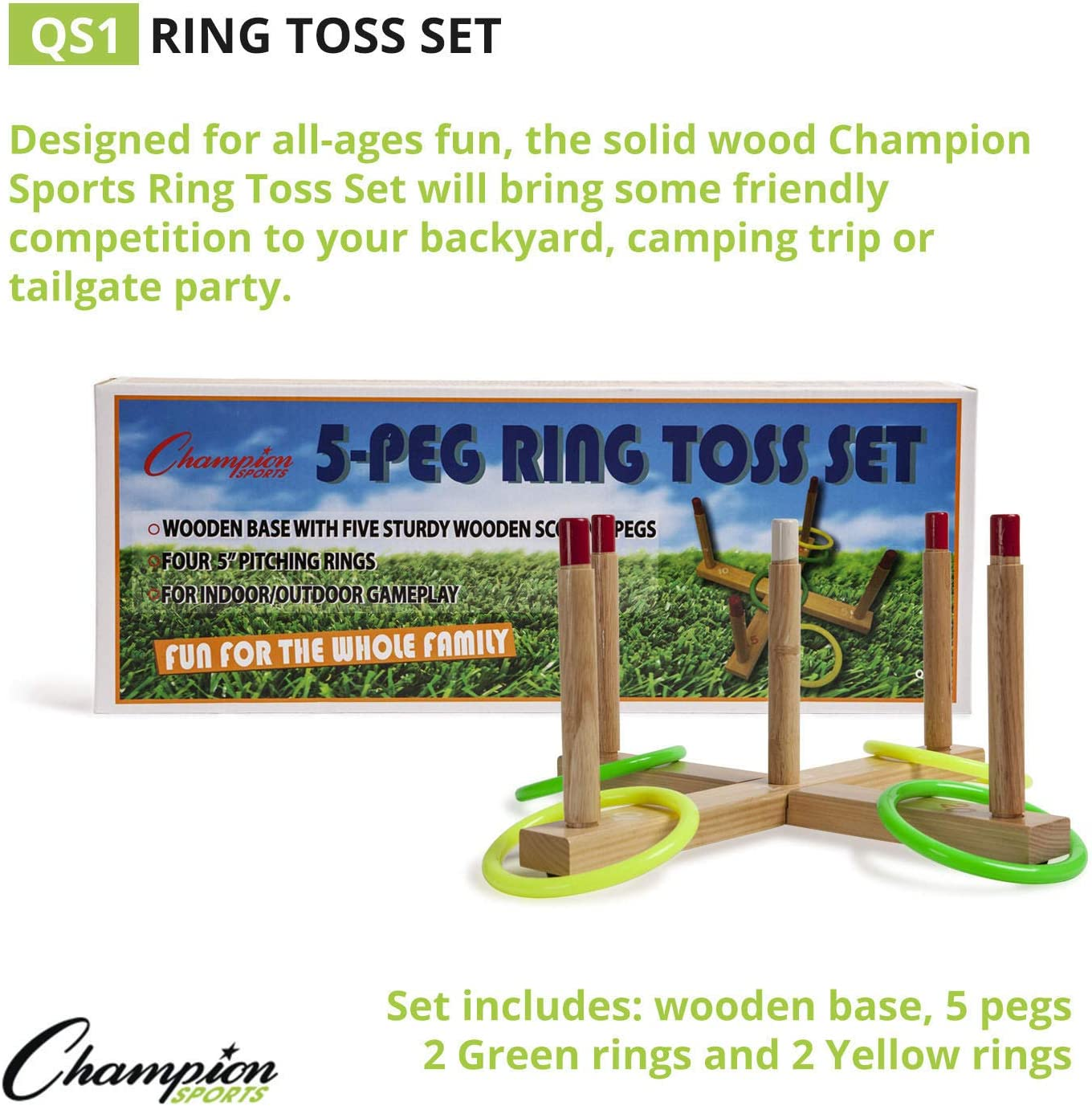 Champion Sports QS1 Wooden Ring Toss Set,Classic