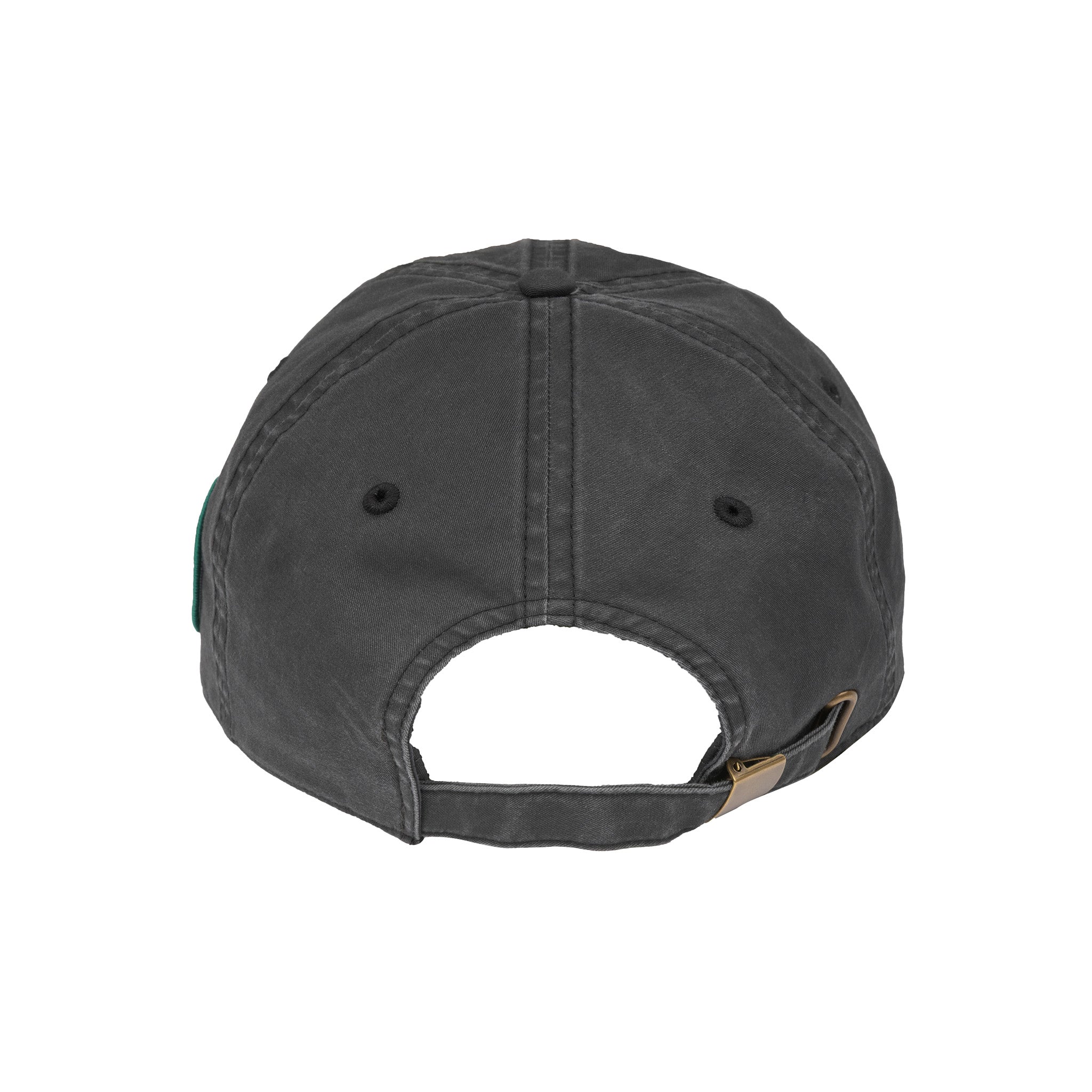 - Adjustable fastener with metal clasp, tonal under-peak lining, washed finish with a worn look