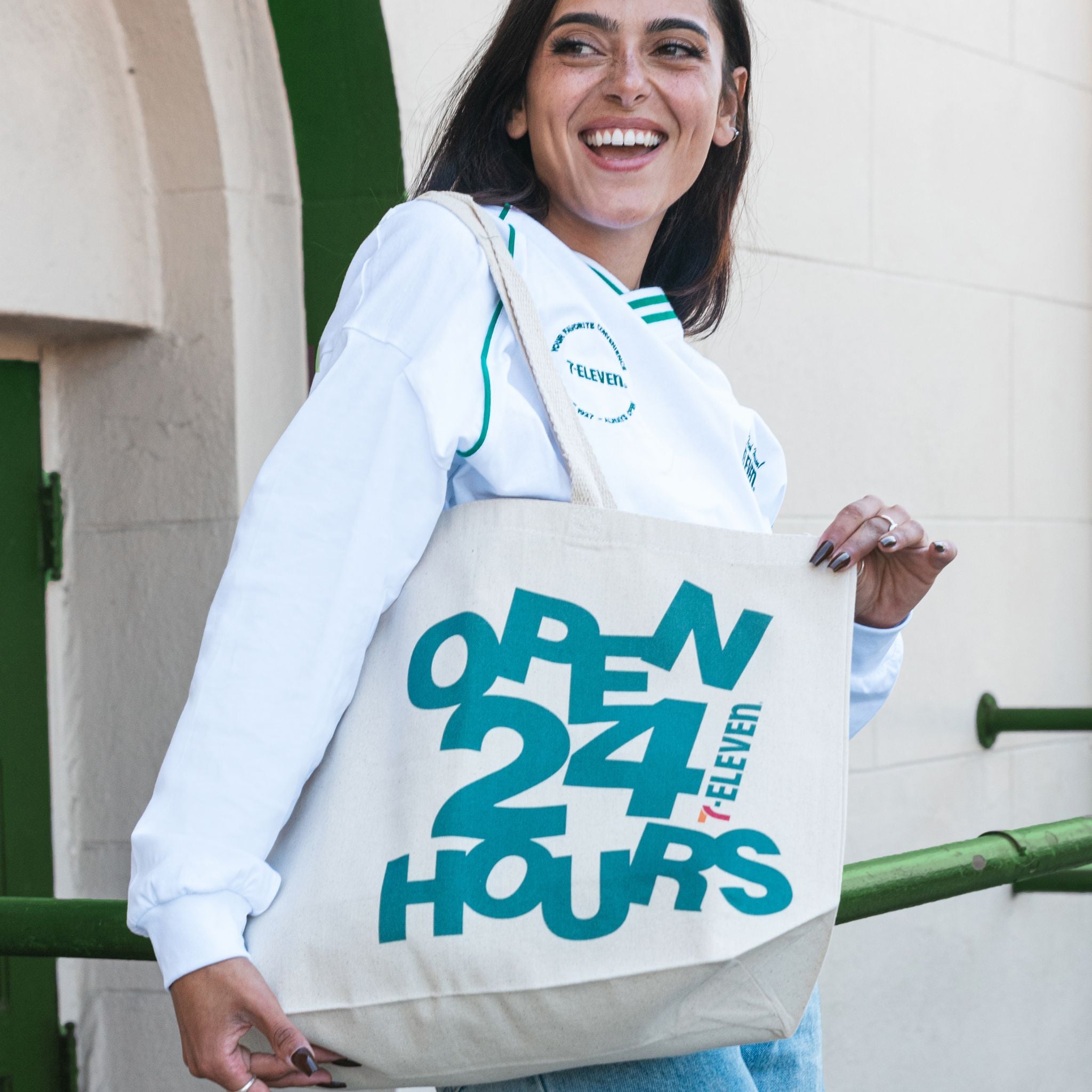 Open 24 Hours Abstract Large Canvas Tote Bag