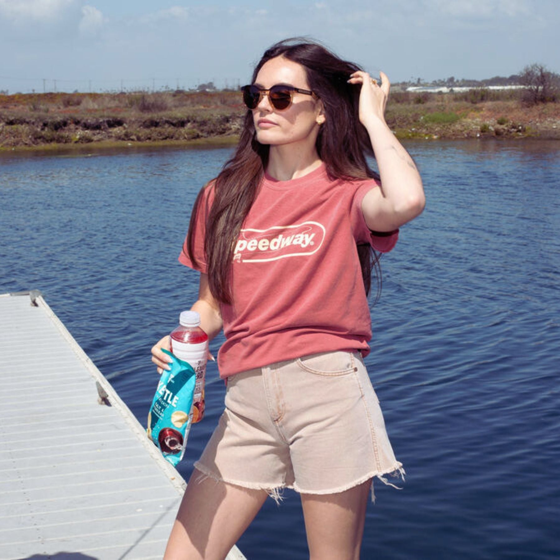 First stop, Speedway. Catch your PB in this comfortable heavy weight tee.