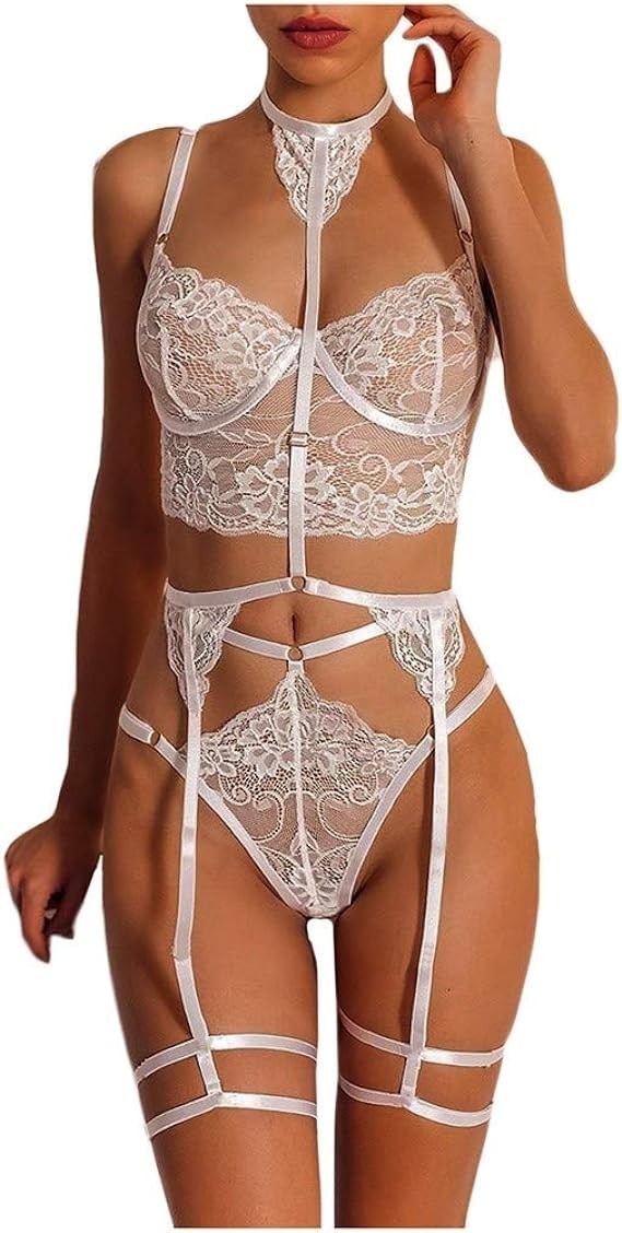 Women's Lingerie Sexy Naughty New Lady Lace Flower Bra No Steel Ring Bra Thong Set Underwear Pajamas Costumes